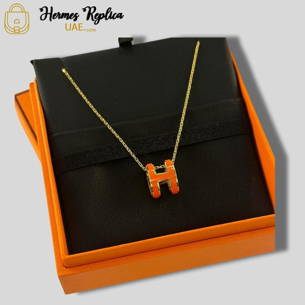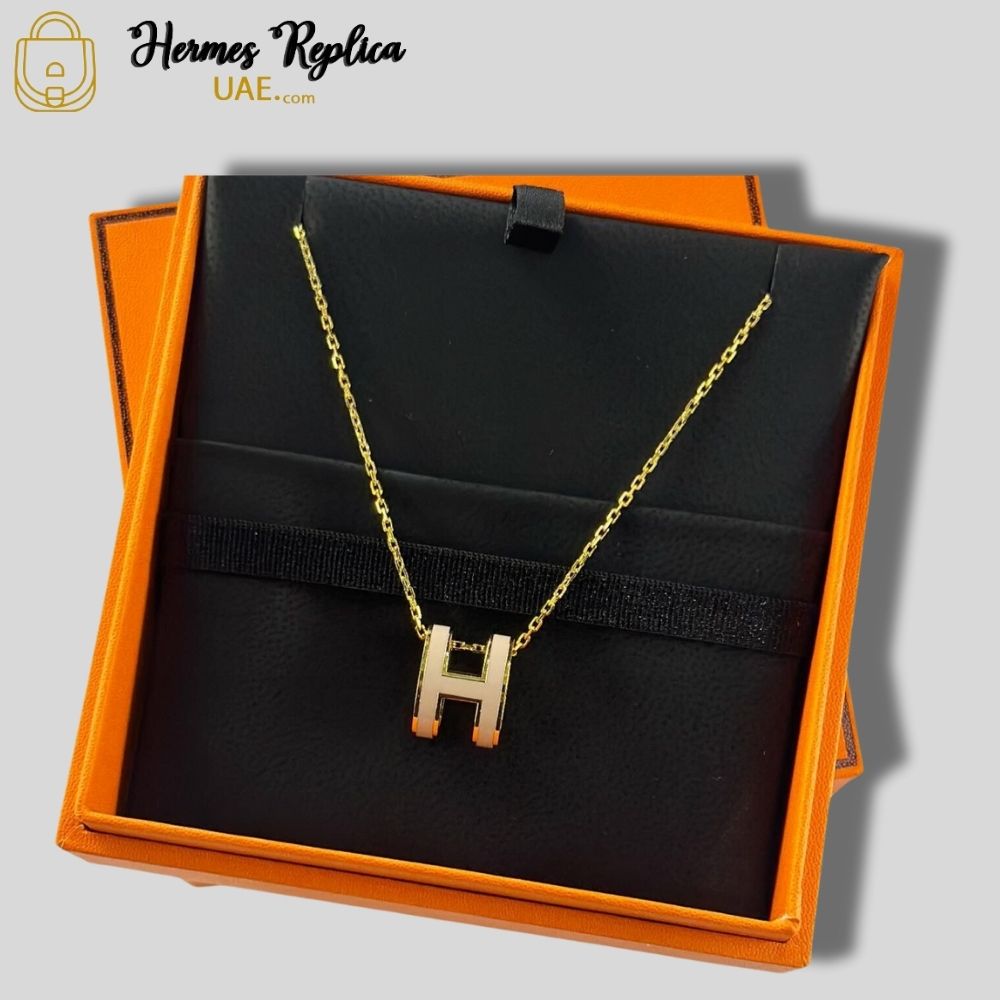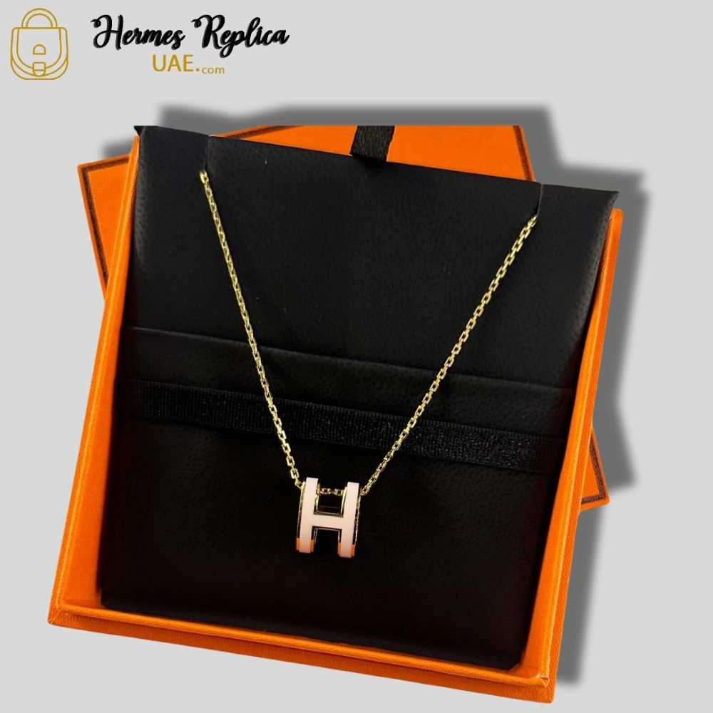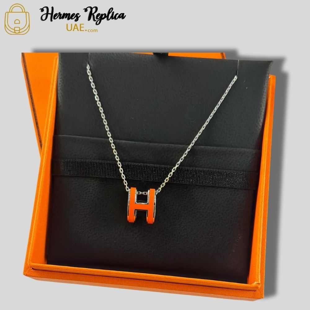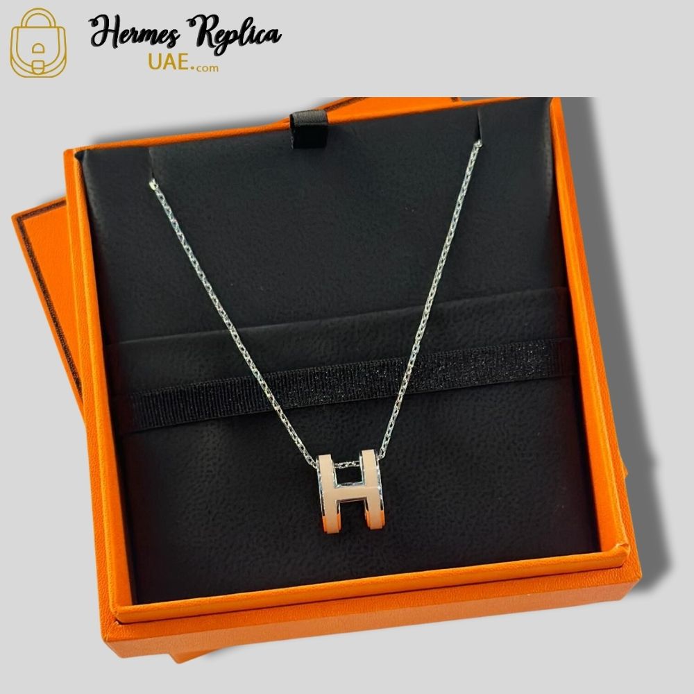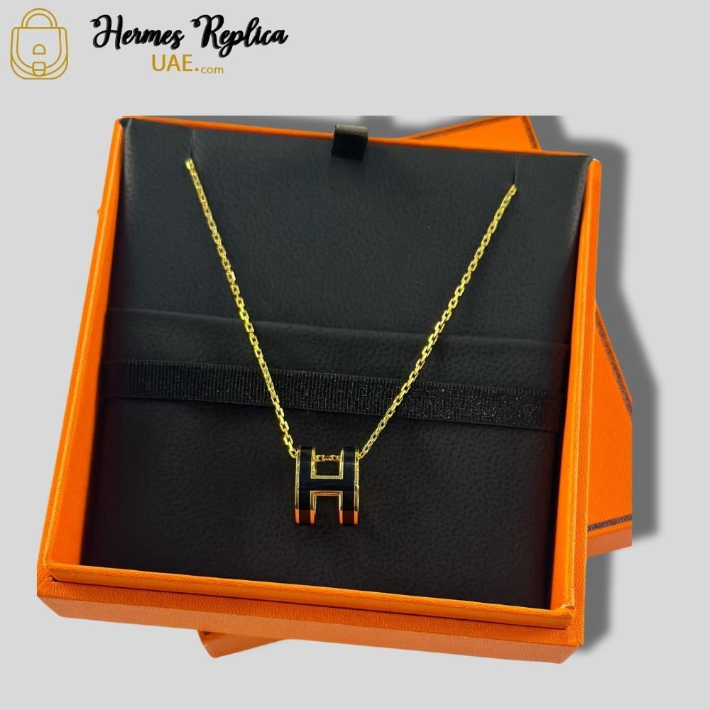 Hermes Mini H Pop Necklace Black Silver